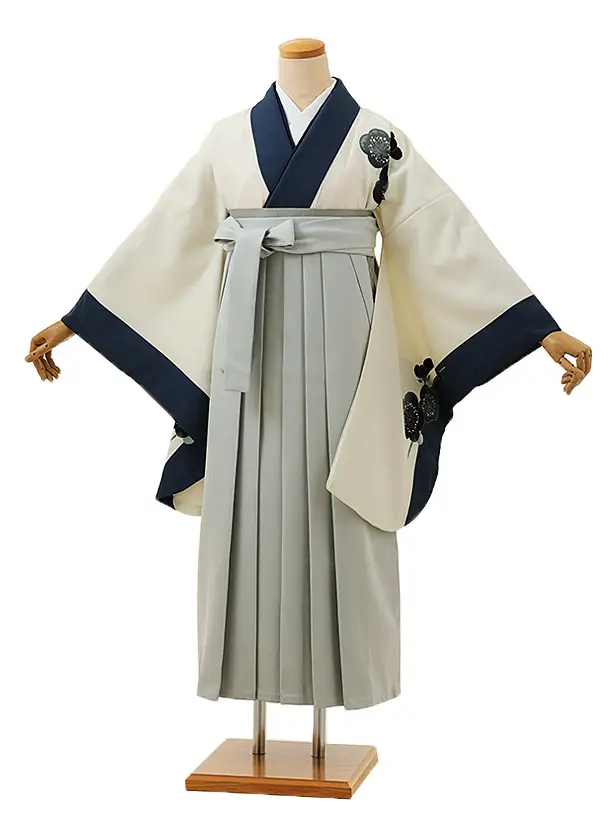 卒業式袴レンタル1926 オフホワイト花×グレー