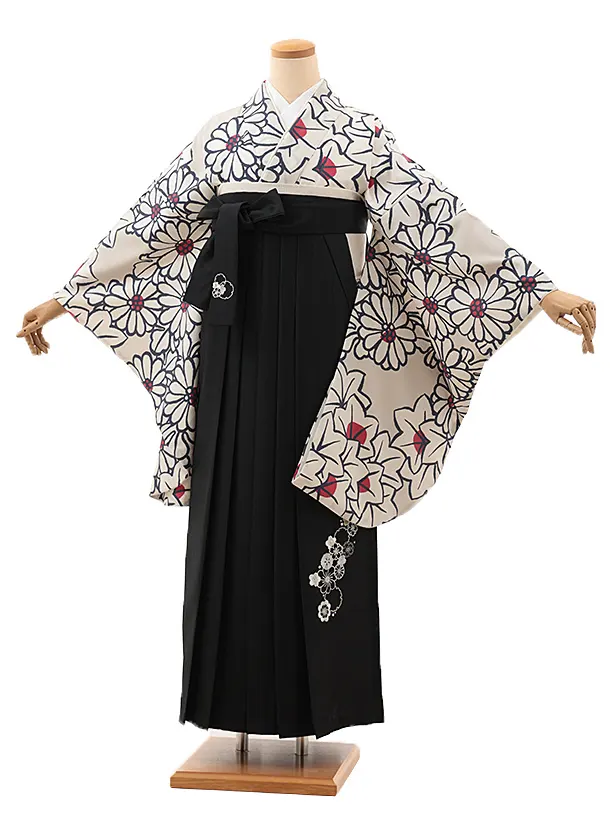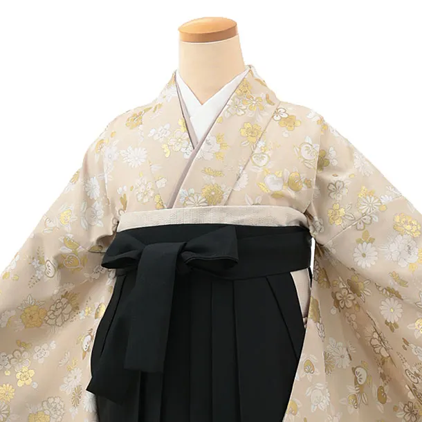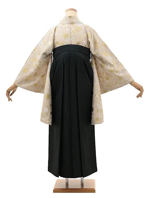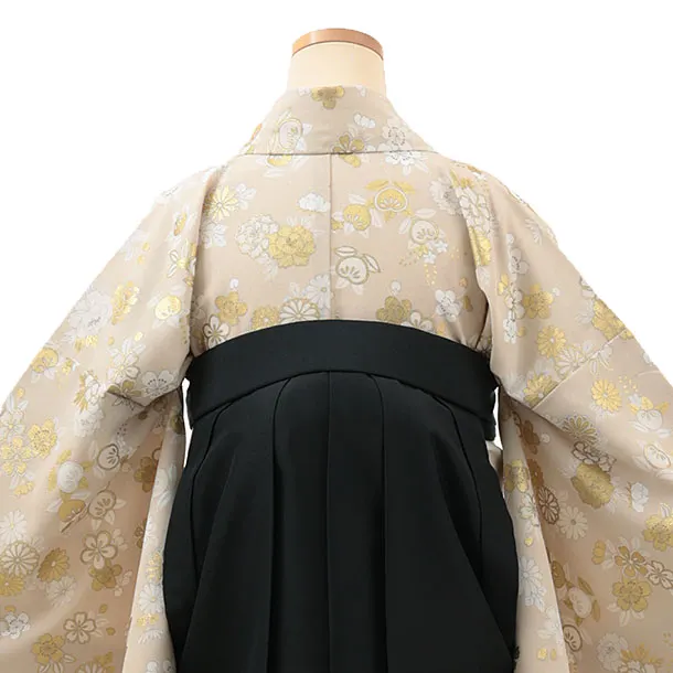 卒業式袴レンタル1929 ベージュ花小紋×黒