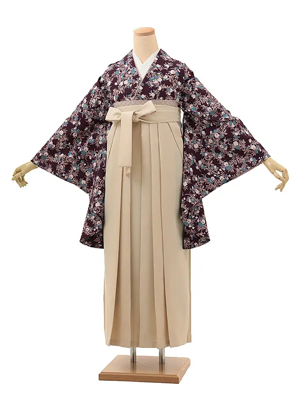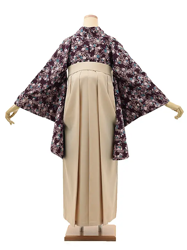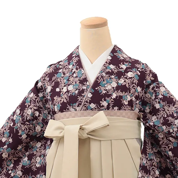 卒業式袴レンタル1932 パープルブラウン小花×アイボリー
