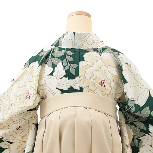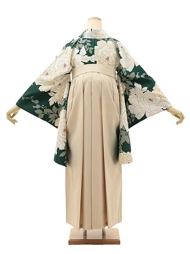 卒業式袴レンタル1935 グリーン牡丹×アイボリー