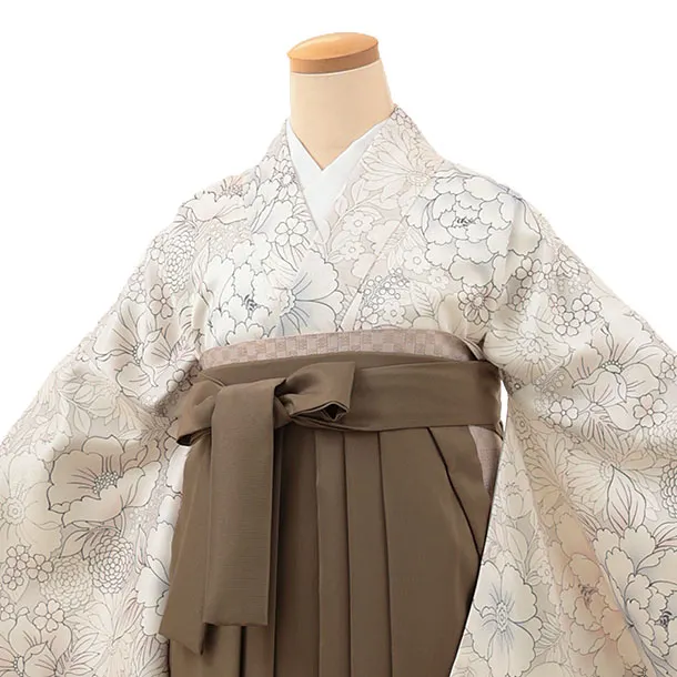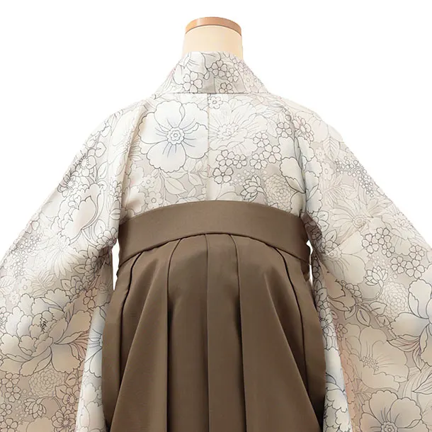 卒業式袴レンタル1947 薄グレー花×ブラウン