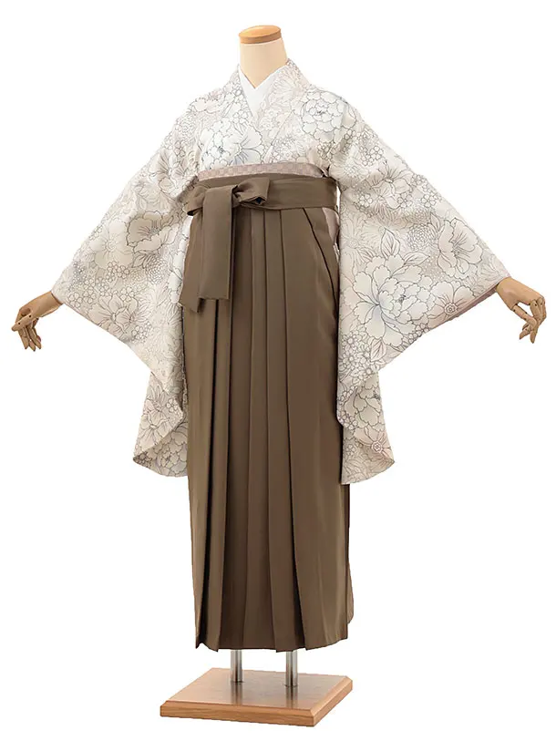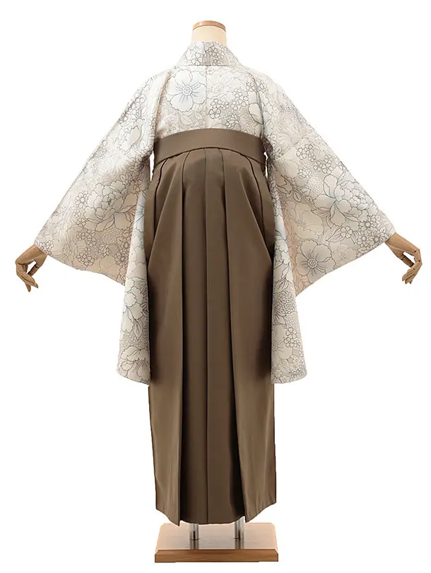 卒業式袴レンタル1948 薄グレー花×ブラウン