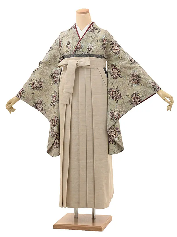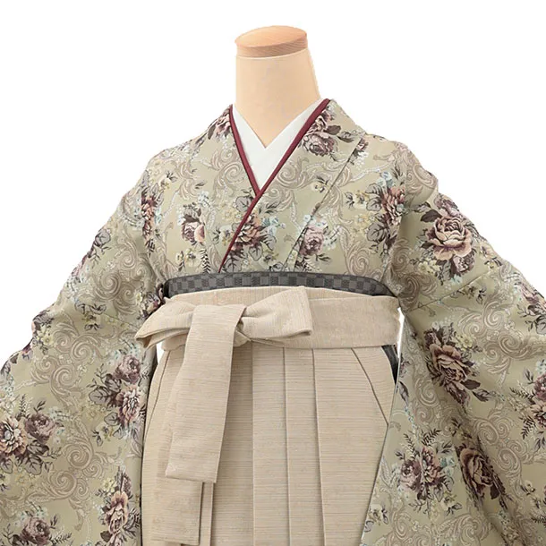 卒業式袴レンタル1952 ベージュバラ×薄ベージュ