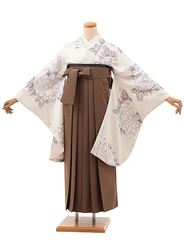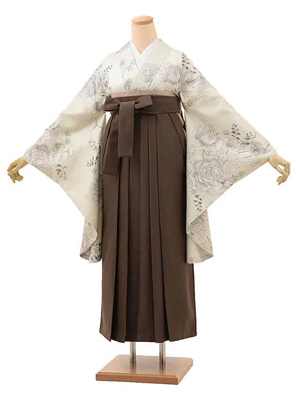 卒業式袴レンタル1956 オフホワイトバラ×ブラウン