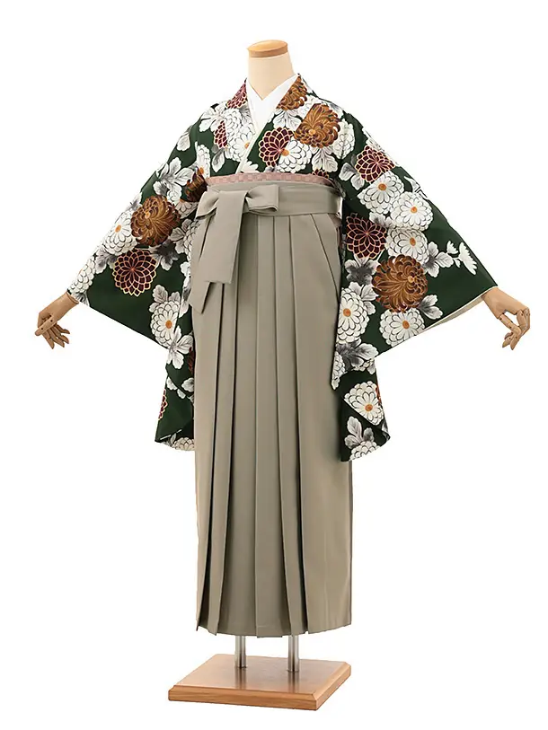 卒業式袴レンタル1958 グリーン菊×グレージュ