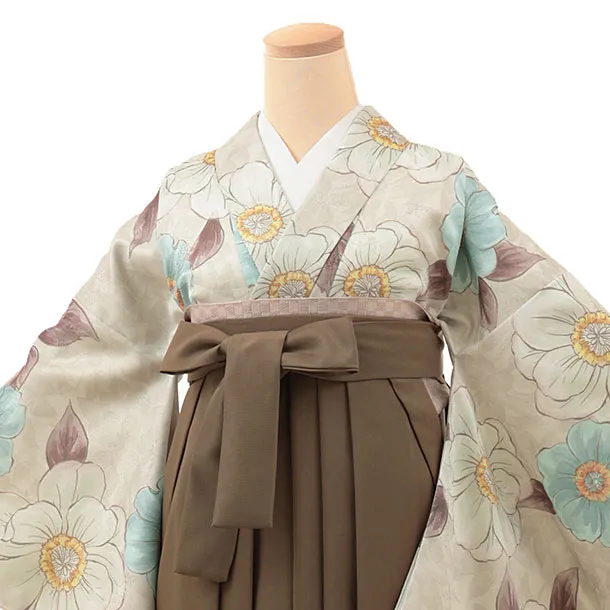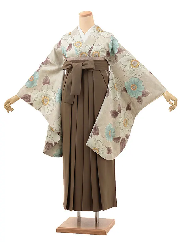 卒業式袴レンタル1959 グレージュ花×モカブラウン