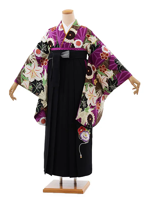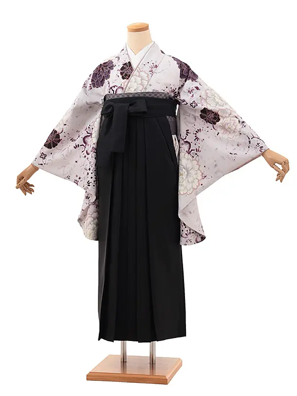 卒業式袴レンタル1961 薄パープル牡丹×黒
