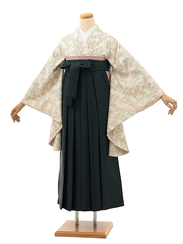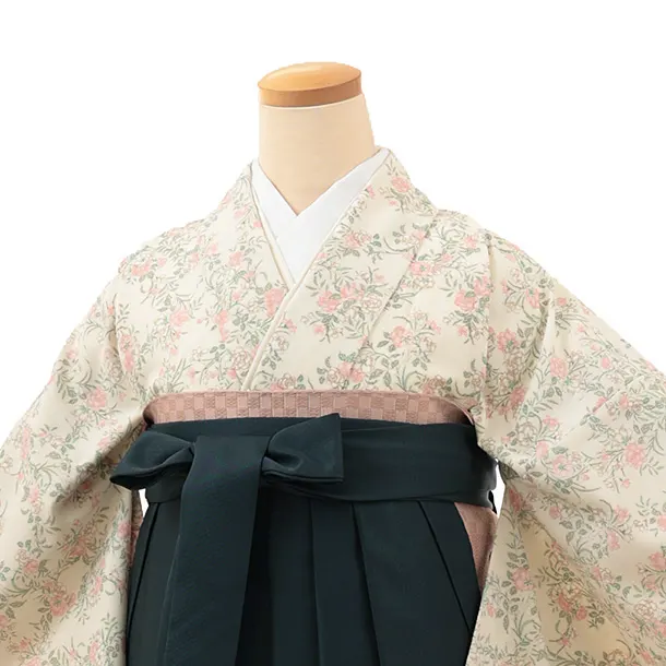 卒業式袴レンタル1966 クリーム小花×モスグリーン