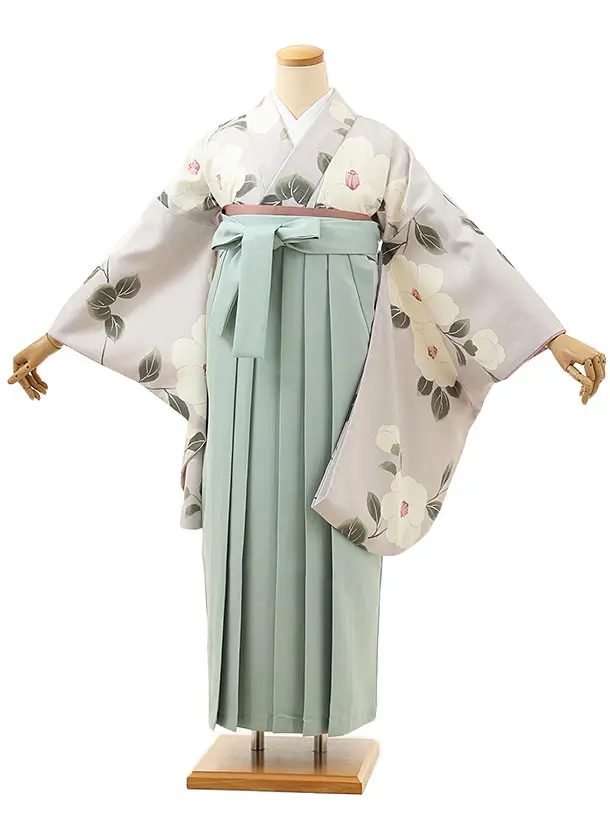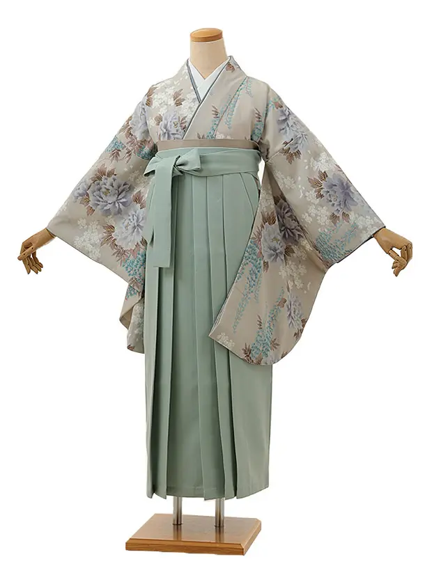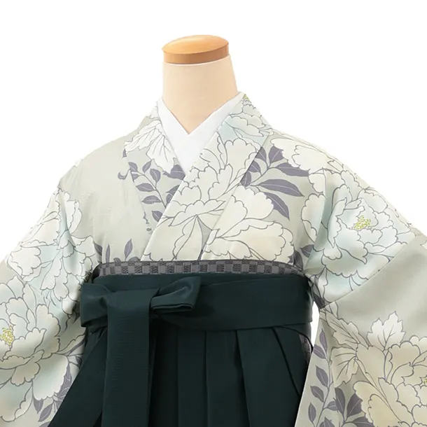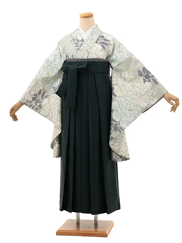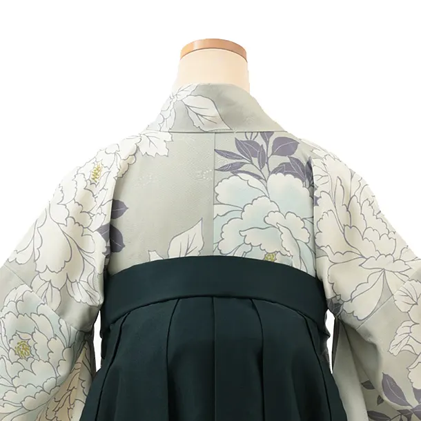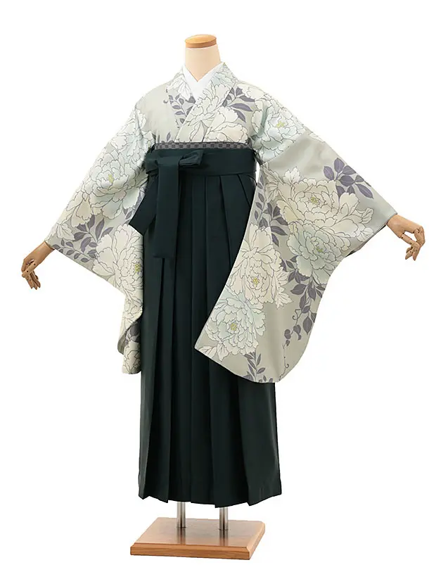 卒業式袴レンタル1974 グリーングレー牡丹×モスグリーン