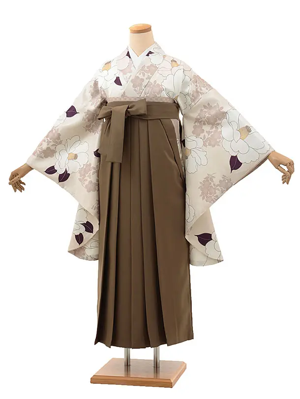 卒業式袴レンタル1977 薄ベージュ椿×モカブラウン
