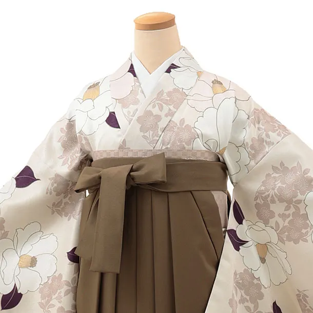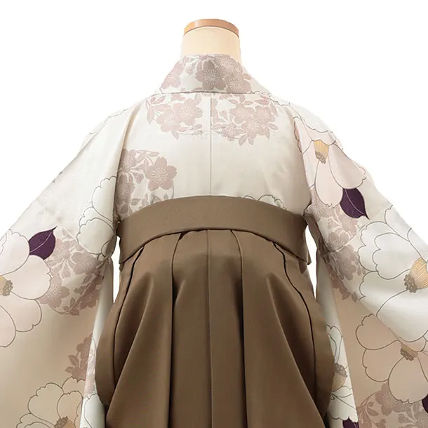 卒業式袴レンタル1978 薄ベージュ椿×モカブラウン