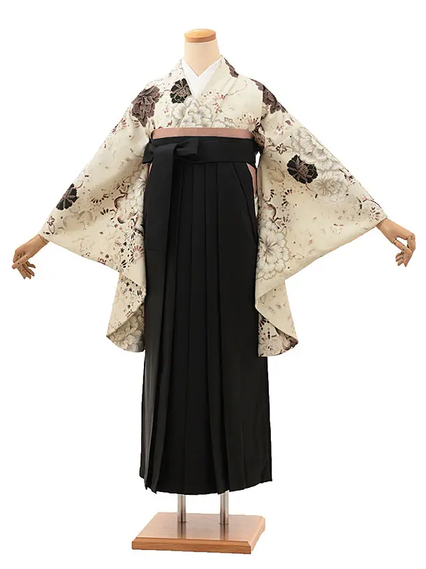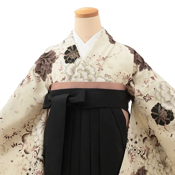 卒業式袴レンタル1982 クリーム牡丹×黒