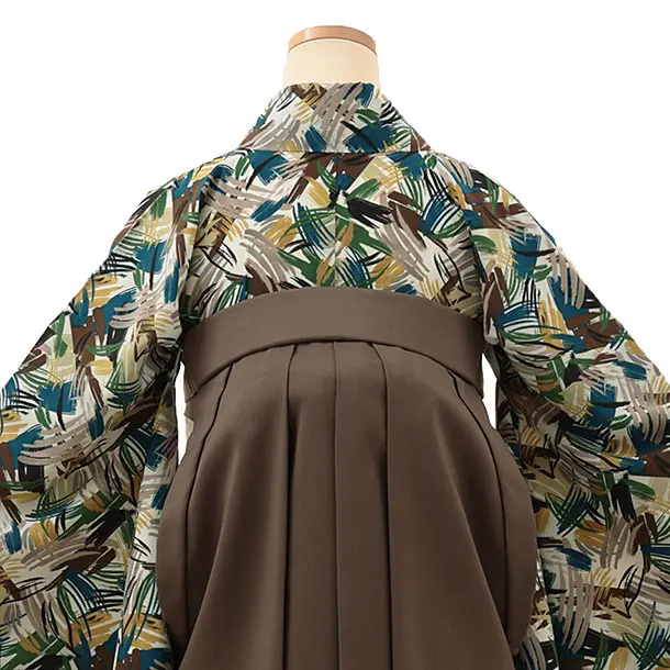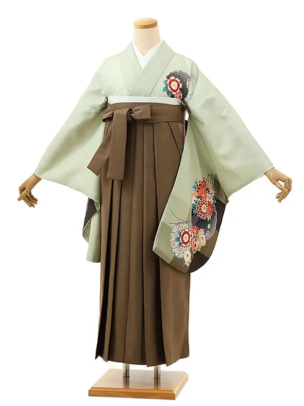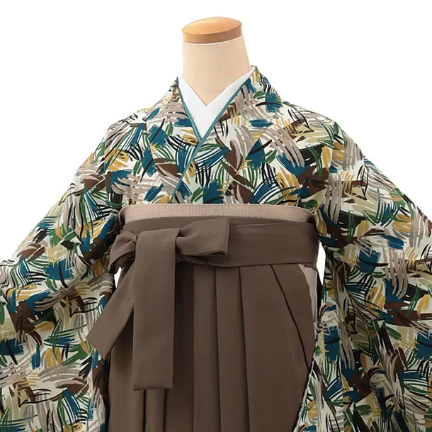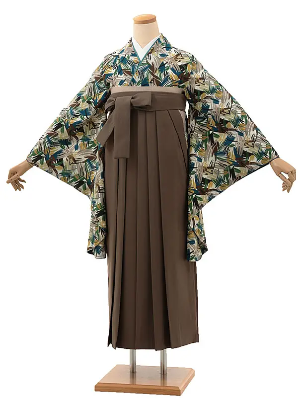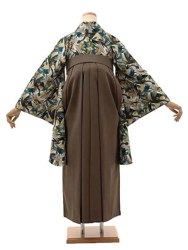 卒業式袴レンタル1989 白グリーン変わり柄×ブラウン