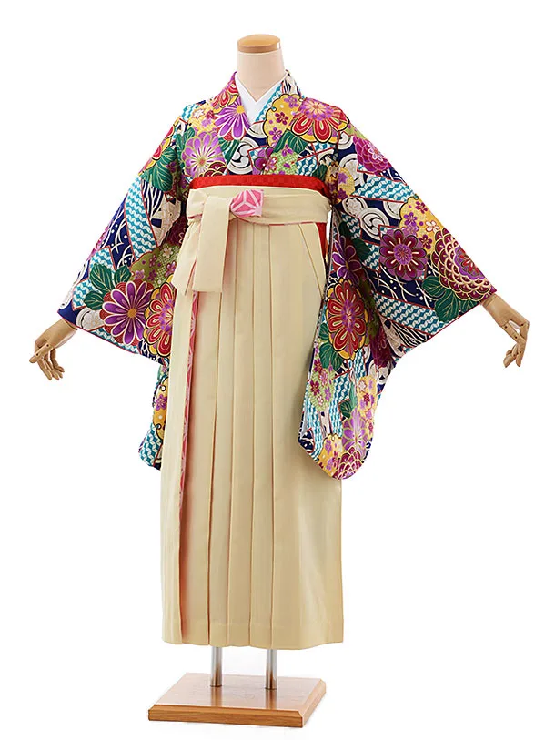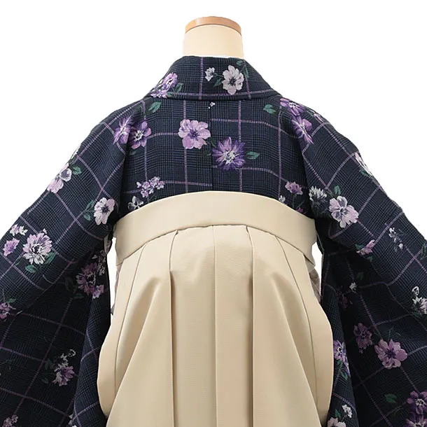 卒業式袴レンタル1994 ネイビーパープル花×アイボリー