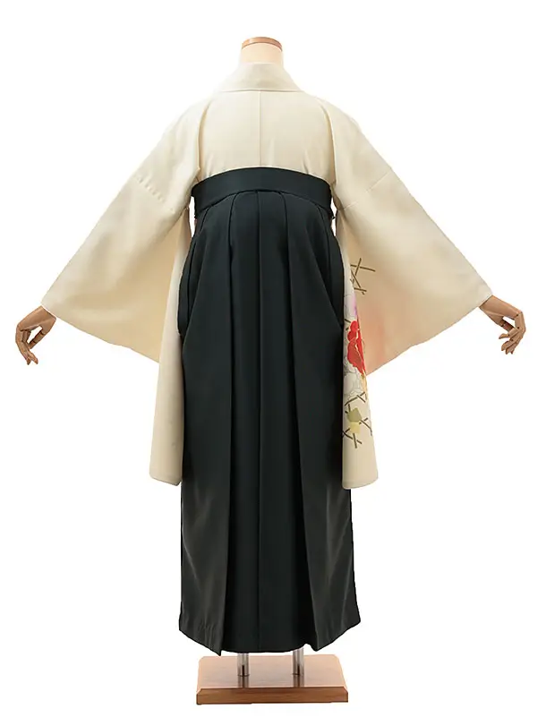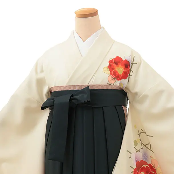 卒業式袴レンタル1999 クリーム地 椿×グリーン