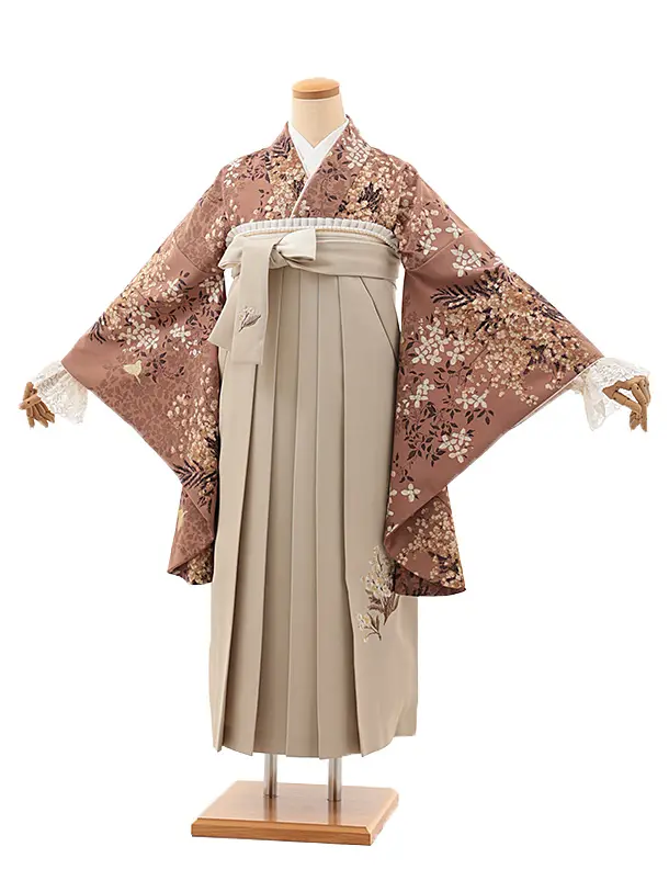 卒業式袴T004SUGARKEI【レース】ピンクベージュミモザ×エクリュベージュ