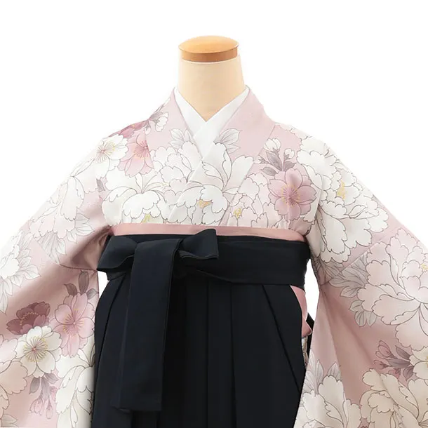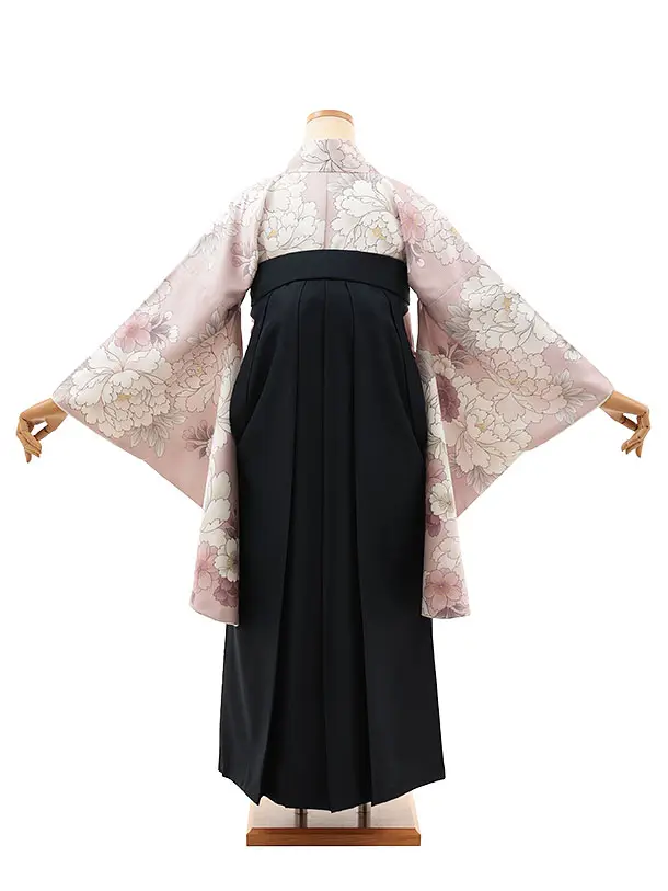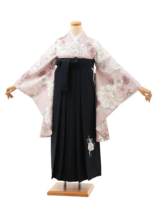卒業袴レンタルT008 ピンクベージュ牡丹桜×紺