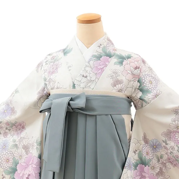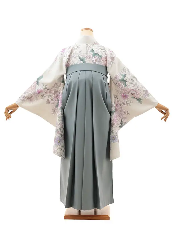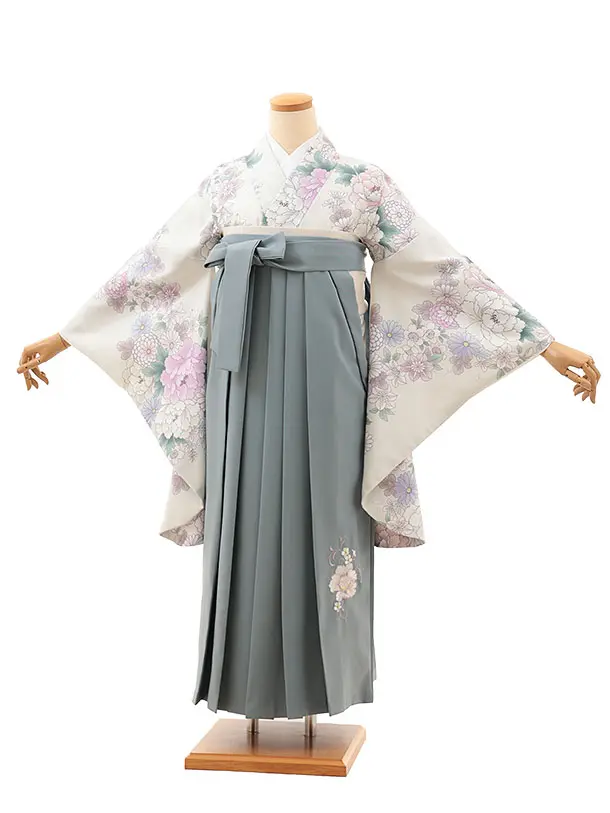 卒業袴レンタルT017 薄ベージュ花×グレー
