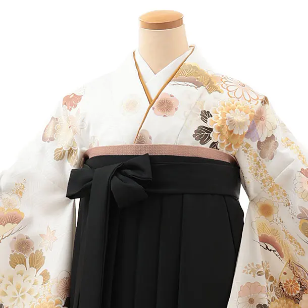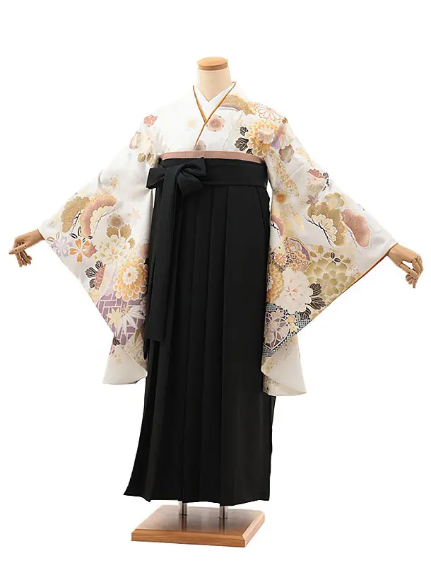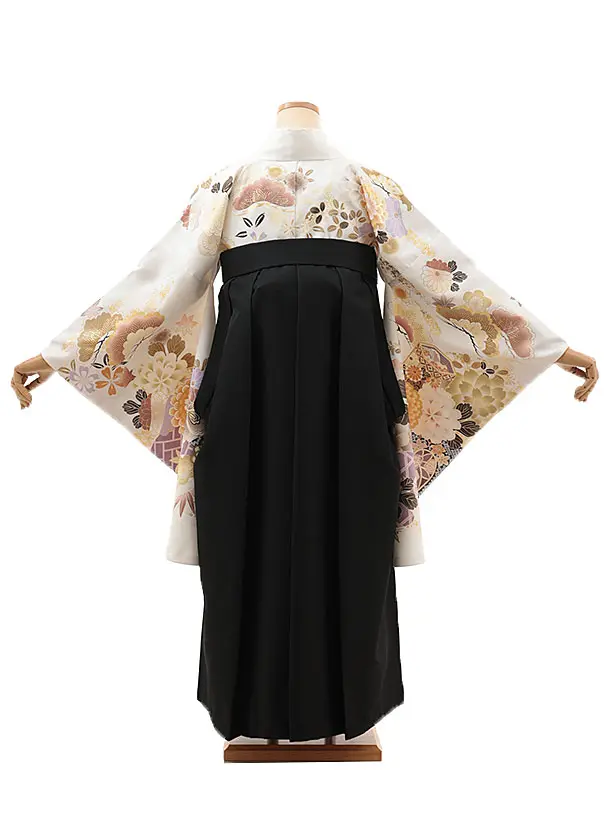 【ふくよかサイズ】卒業袴 T028 白地 花づくし×黒