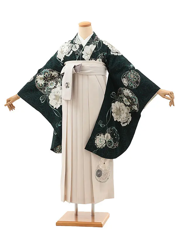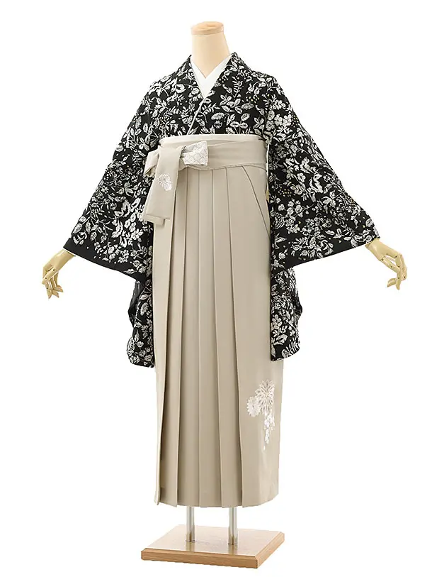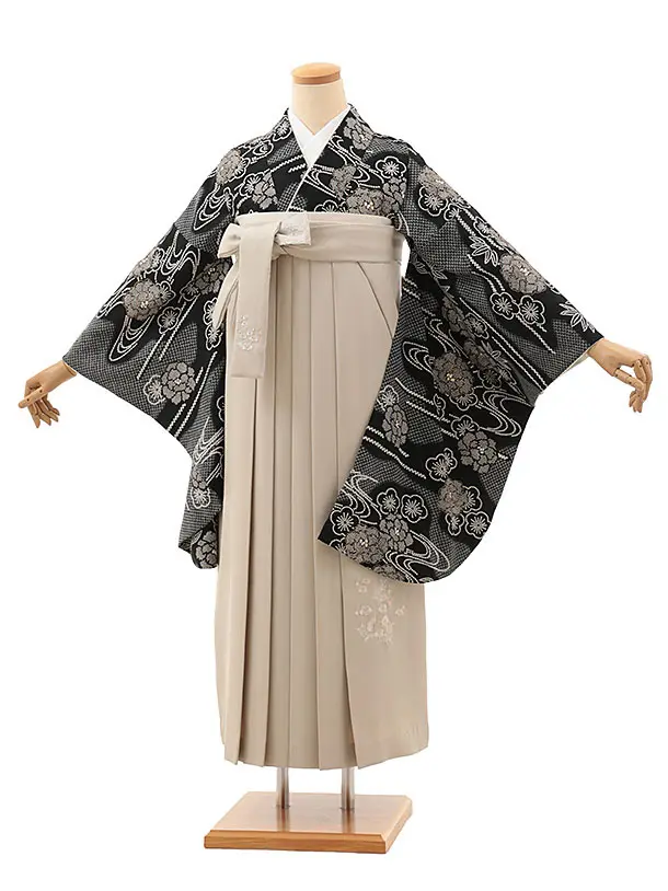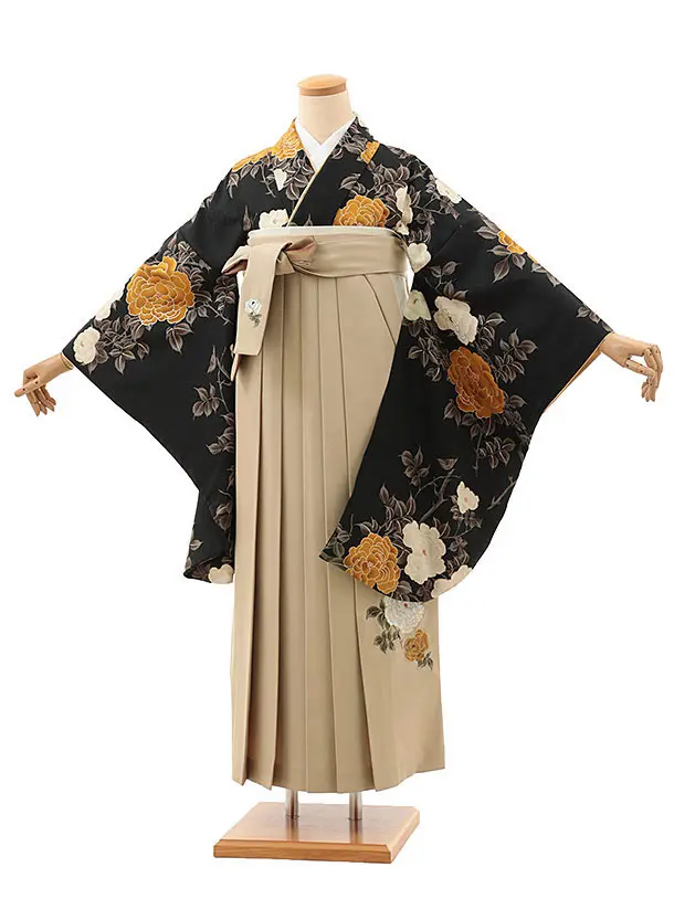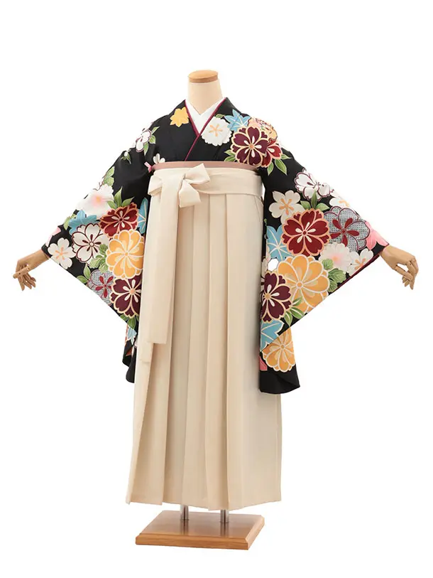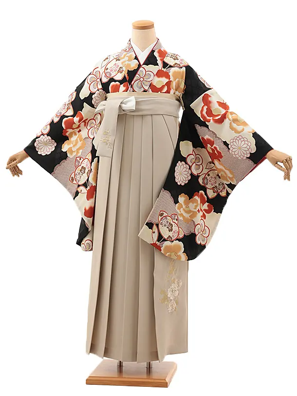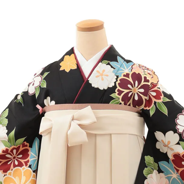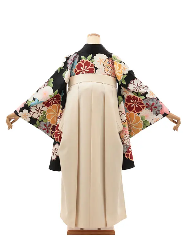 【ふくよかサイズ】卒業袴 T031 黒地 雪輪花づくし×アイボリー