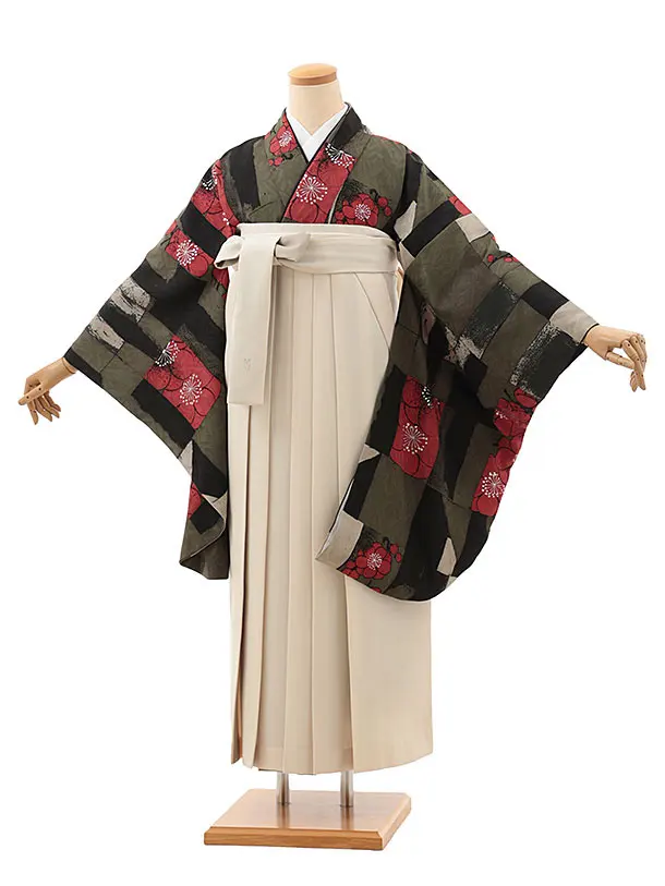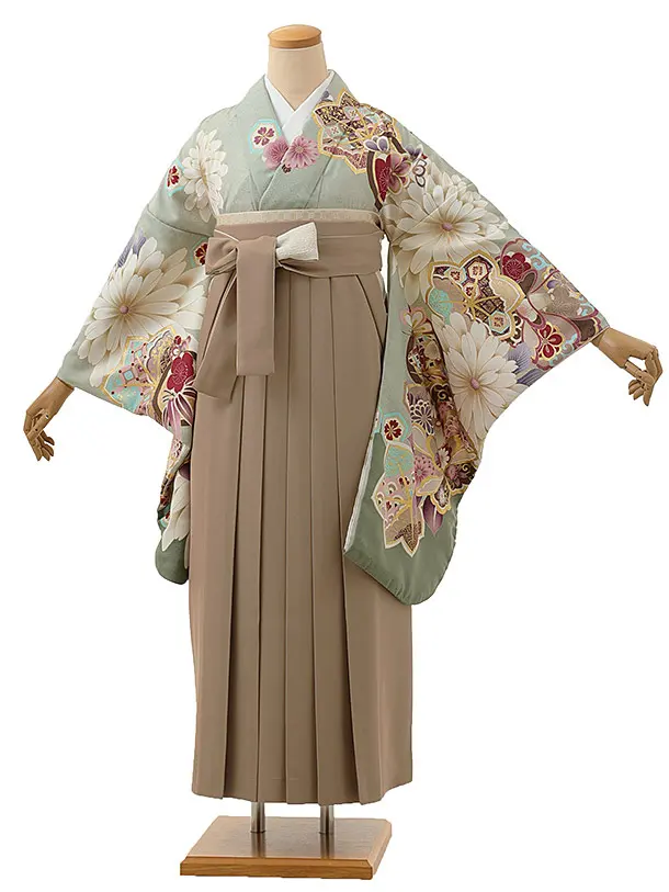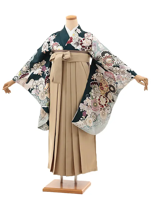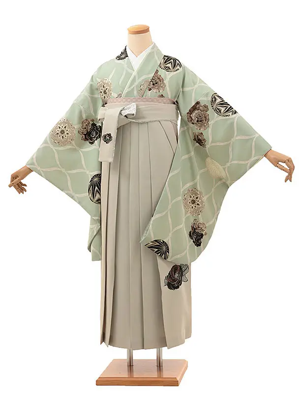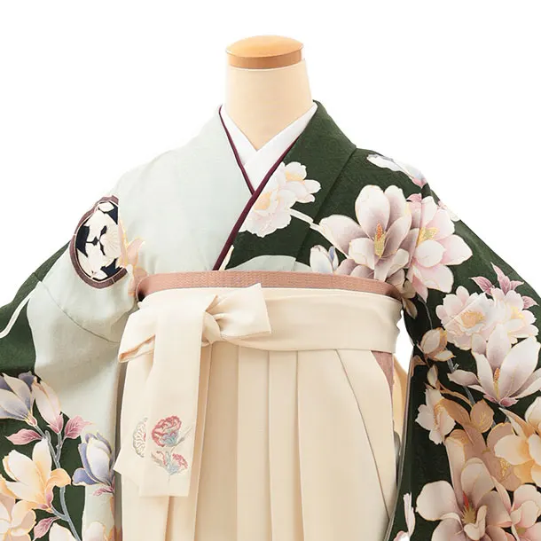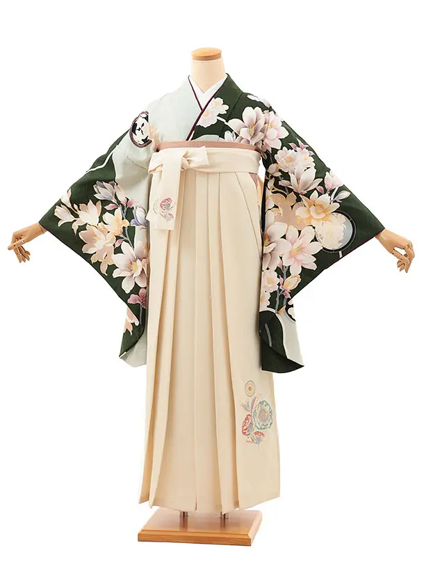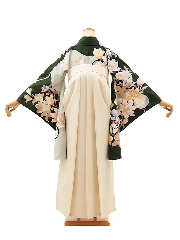 卒業袴T047 グリーン丸紋花づくし×クリーム
