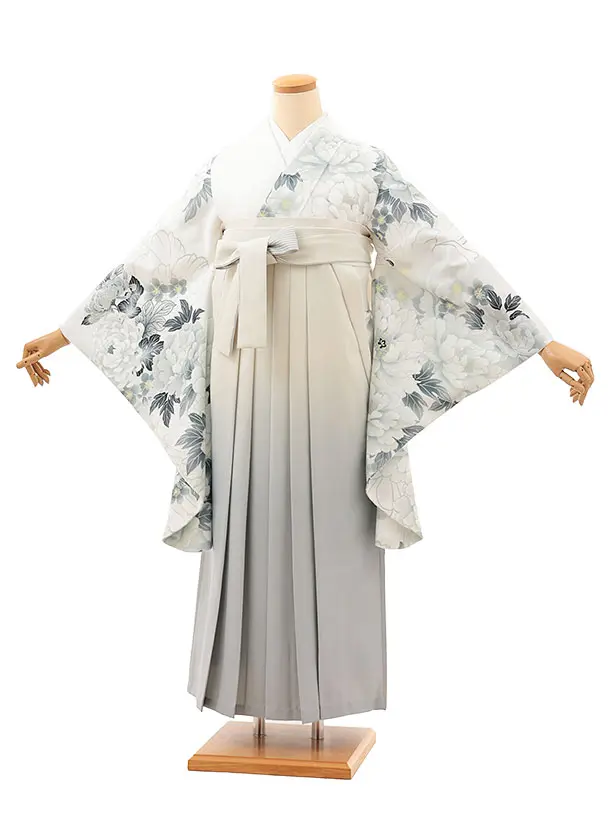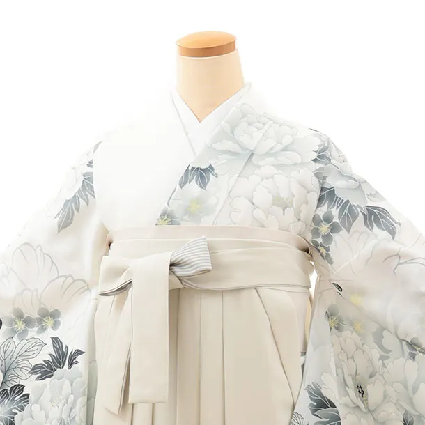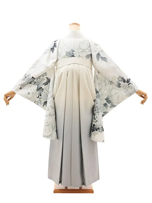 卒業袴T054 白地 乱菊牡丹×クリームグレーぼかし