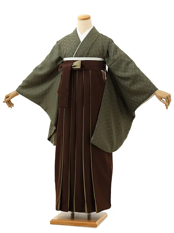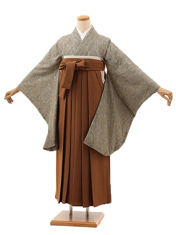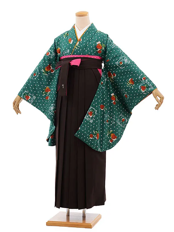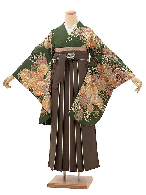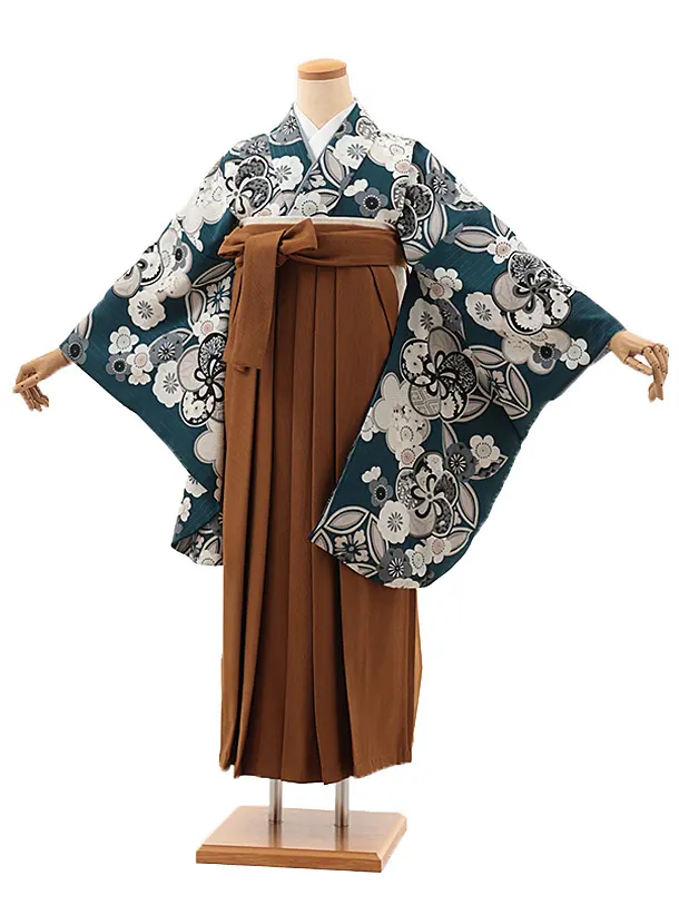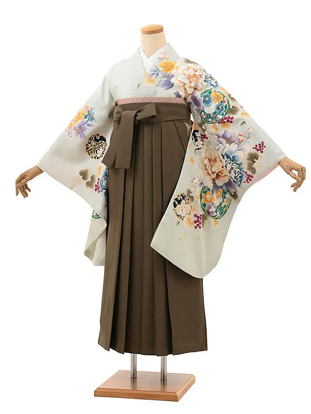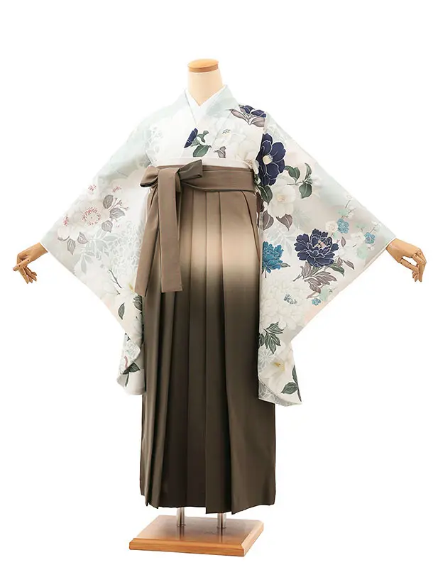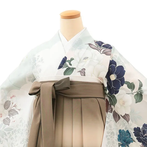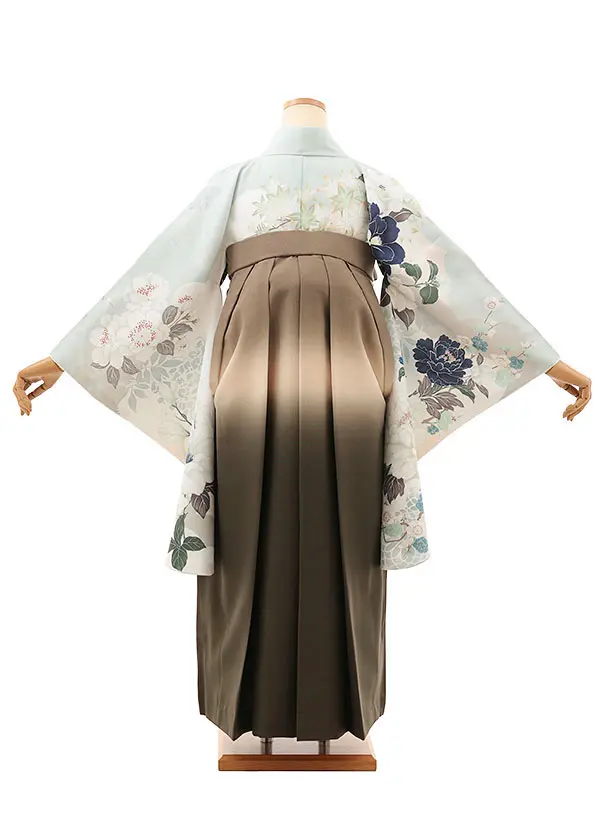 卒業袴T057 白薄ミント椿牡丹×ブラウンぼかし