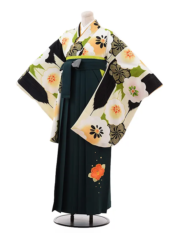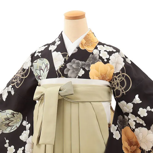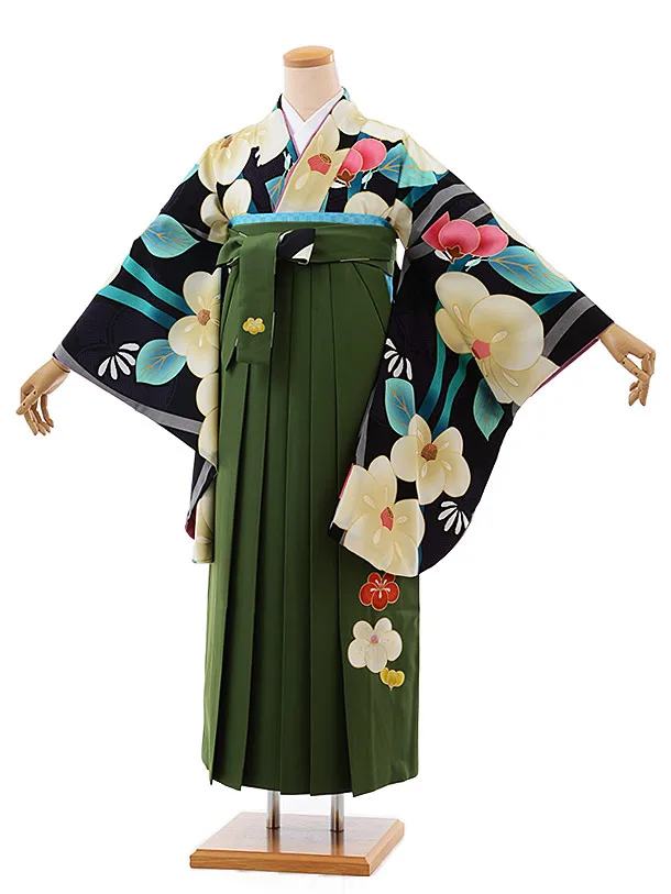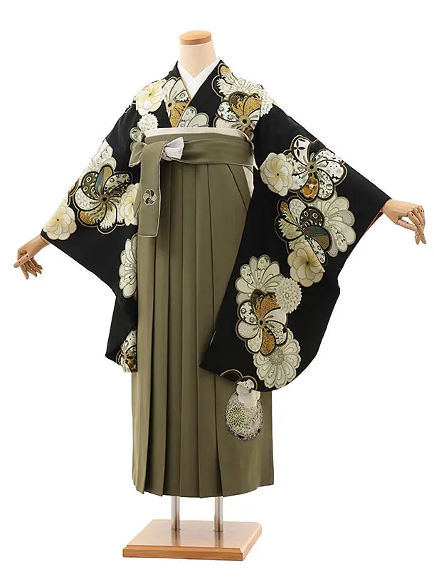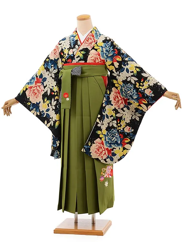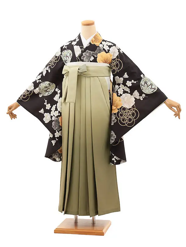 卒業袴T072 黒鞠花×抹茶ぼかし