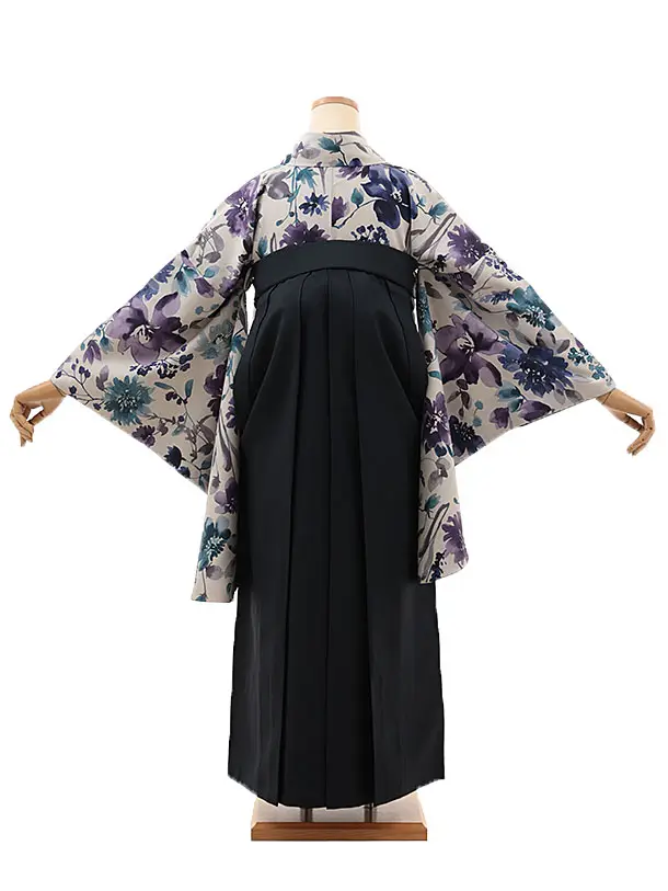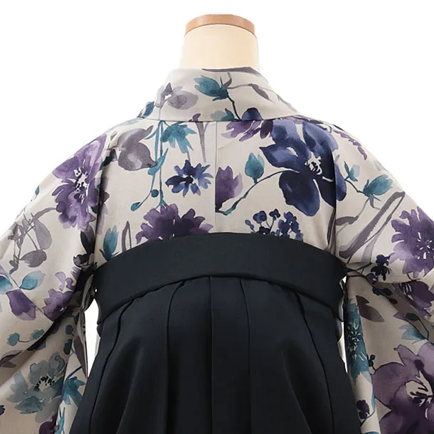 卒業袴T091 薄グレージュ水彩花×紺