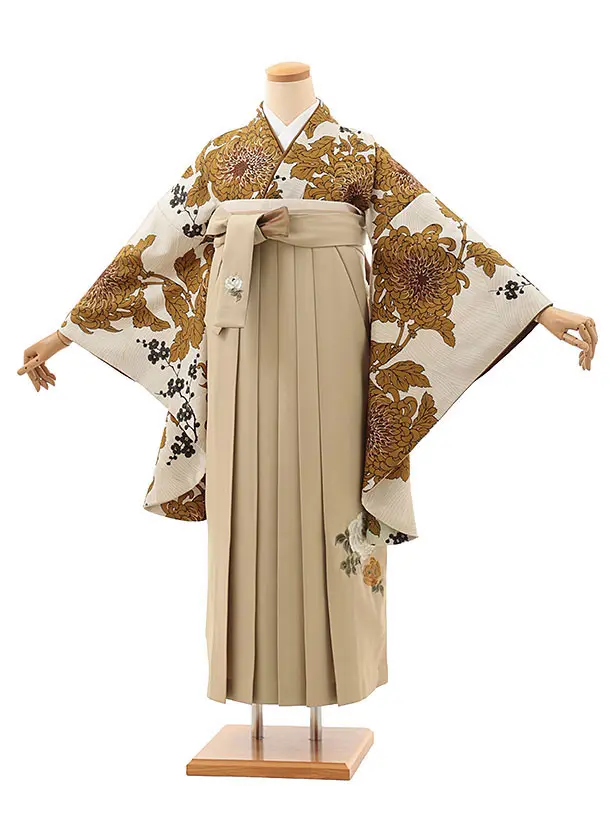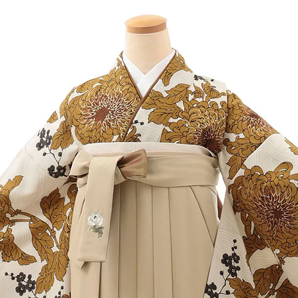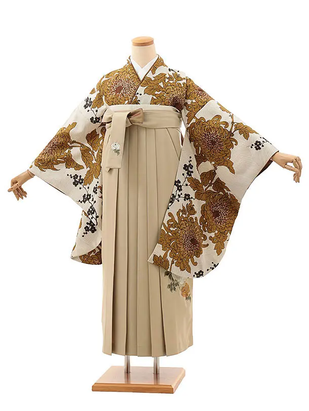 卒業袴T097 そしてゆめ アイボリー乱菊×モカベージュ
