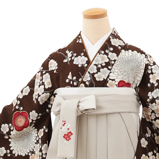 卒業袴T121 九重 ブラウン梅菊×ベージュ