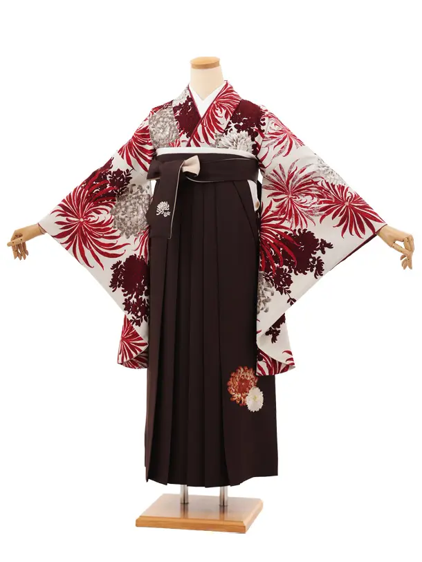 卒業袴T144 紅一点 アイボリー赤乱菊×ブラウン
