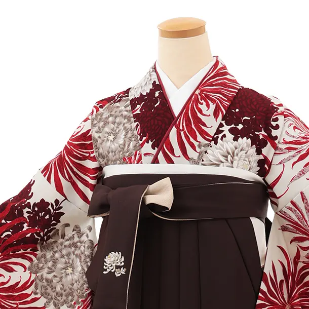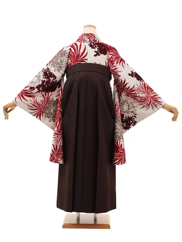 卒業袴T146 紅一点 アイボリー赤乱菊×ブラウン