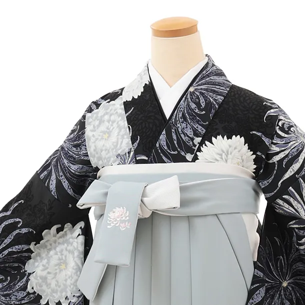 卒業袴T152 紅一点 チャコールグレー乱菊×ブルーグレー