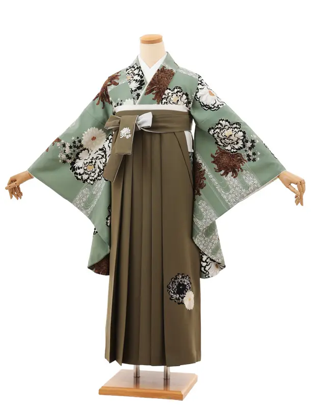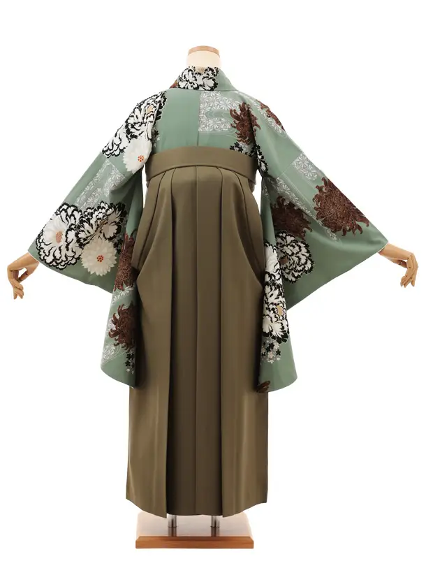 卒業袴T158 紅一点 ペールグリーン菊牡丹×モスグリーン