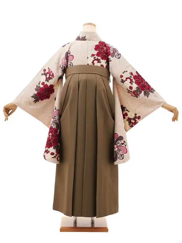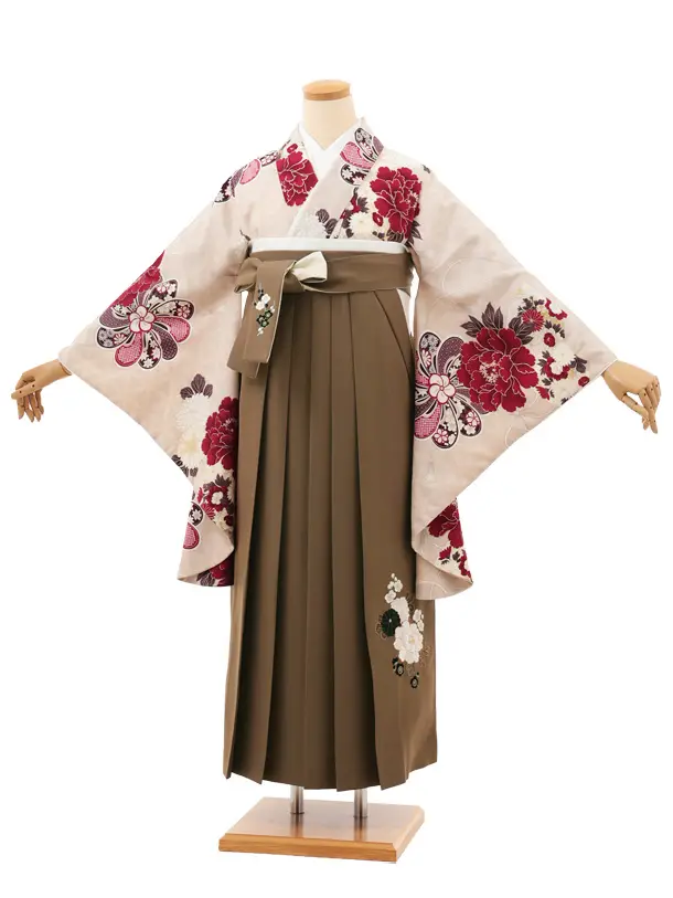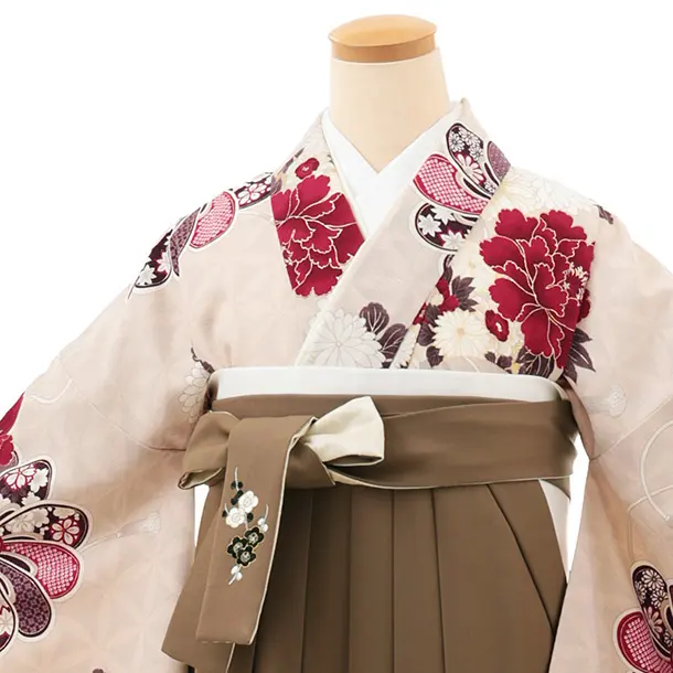 卒業袴T169 九重 ベージュ牡丹×モカブラウン