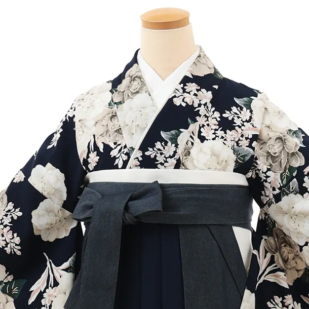 卒業袴T183 Heather ネイビー花×デニム切りかえ