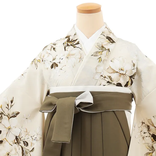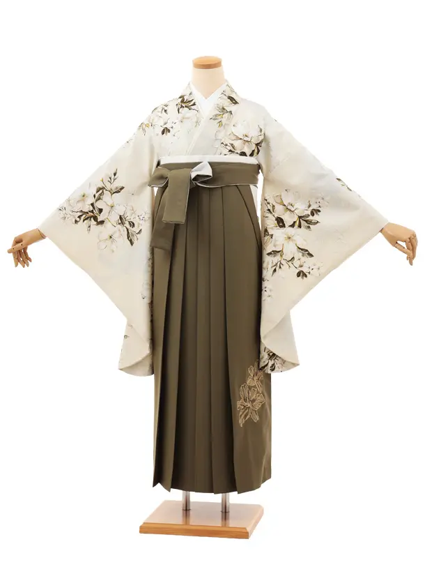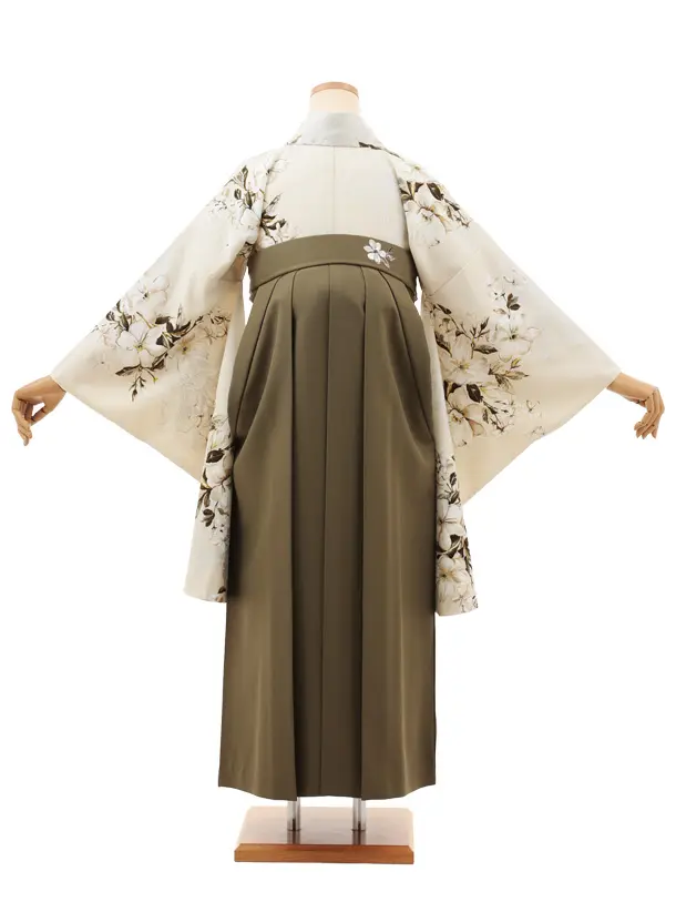 卒業袴T209 SUGARKEI オーツミルク花×オリーブカーキ