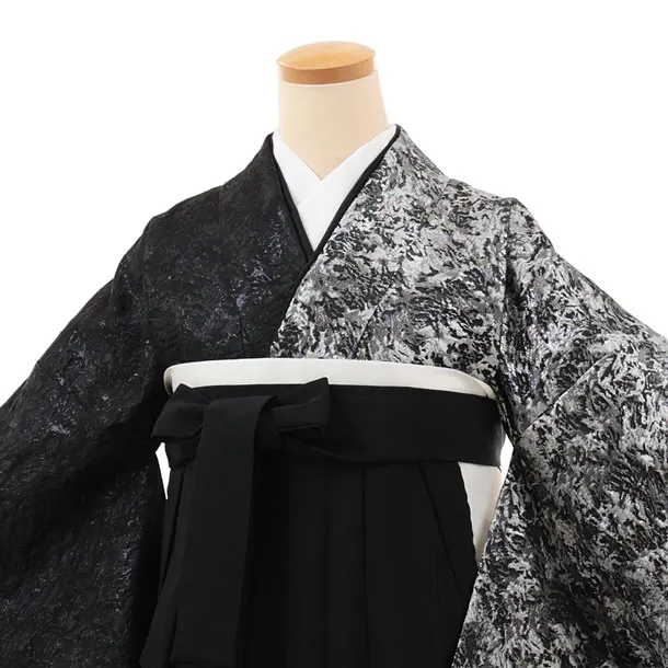 卒業袴T217 黒シルバー片身替り×黒