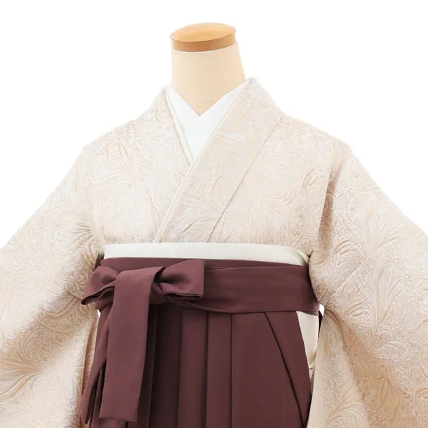 卒業袴T219 ベージュゴールドジャガードリーフ×ブラウン