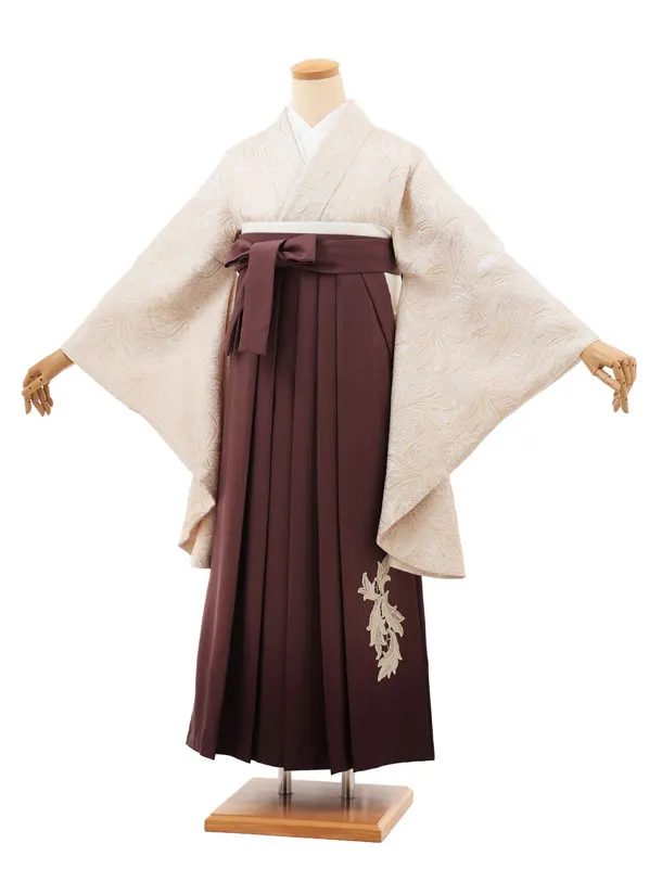 卒業袴T220 ベージュゴールドジャガードリーフ×ブラウン