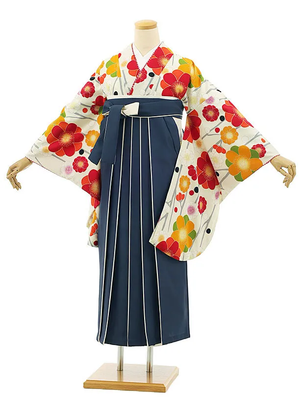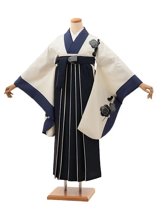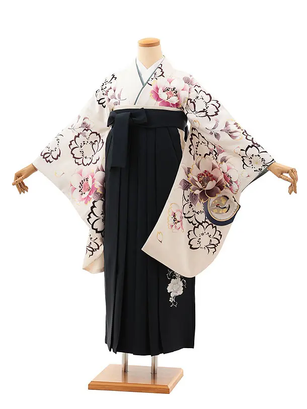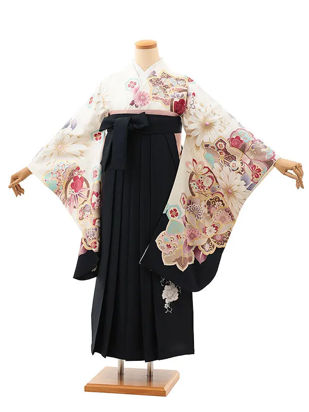 卒業袴T222 オフ白シルバージャガードバラ×ブルーグレー