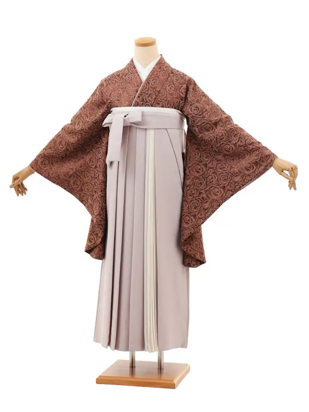 卒業袴T225 ブラウンジャガードバラ×ピンクベージュ