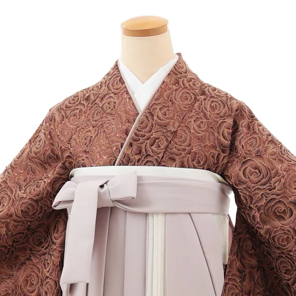 卒業袴T226 ブラウンジャガードバラ×ピンクベージュ