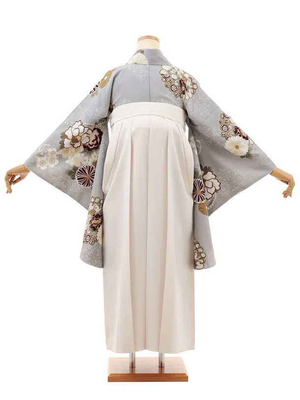 卒業袴T229 Kansai グレー地 花×アイボリー
