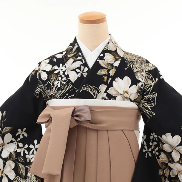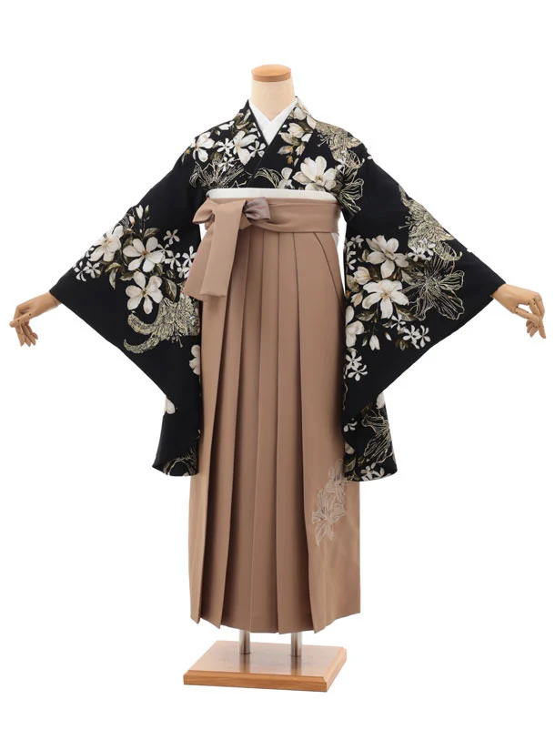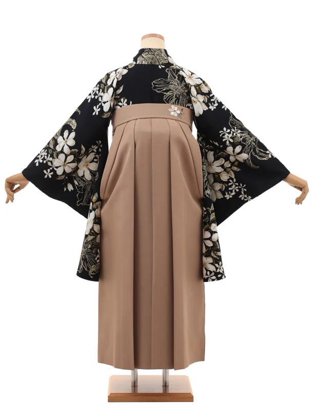 卒業袴T233 SUGARKEI 黒地花×モカブラウン