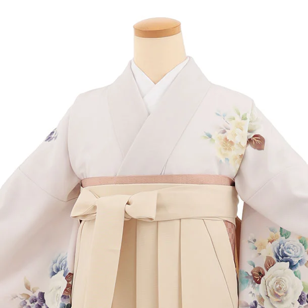 先生,教員向け袴レンタルT235 薄ピンク花×ベージュ