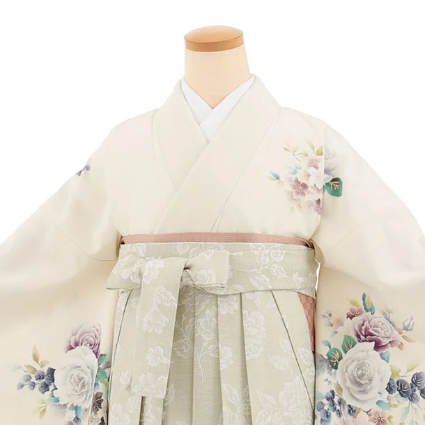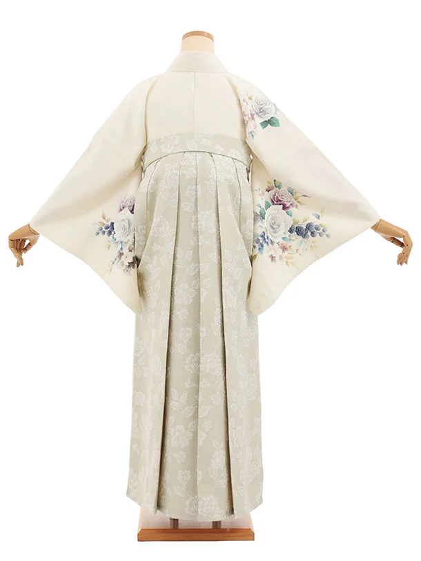 先生,教員向け袴レンタルT241 クリーム花×薄グリーン花