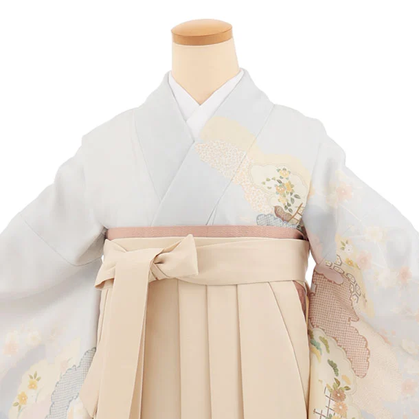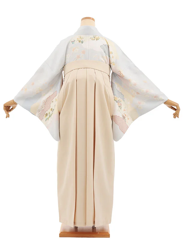 先生,教員向け袴レンタルT248 水色雲取りに桜×ベージュ