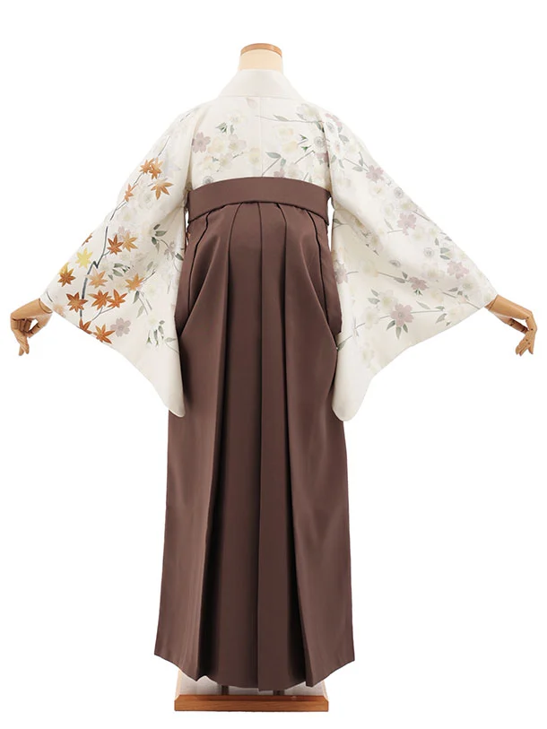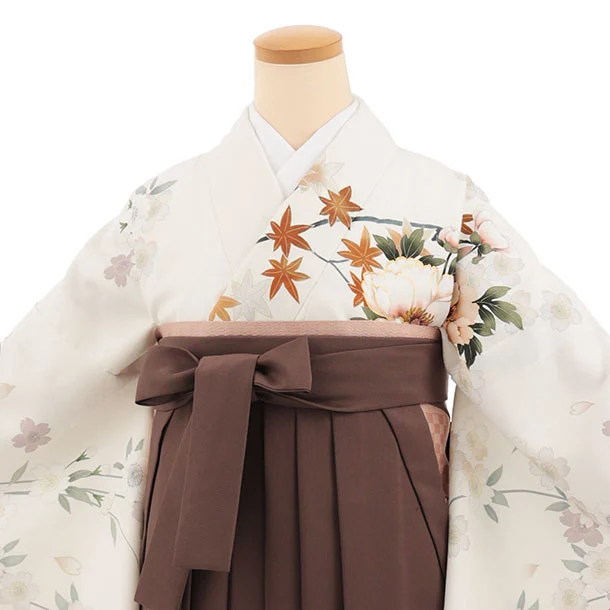 先生,教員向け袴レンタルT249 オフ白桜牡丹×ブラウン